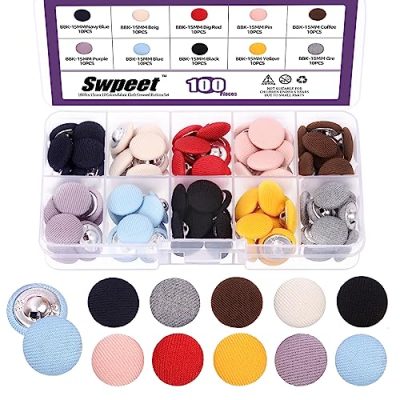 The Swpeet 100Pcs 10 Colors 15mm Fabric Cloth Covered Metal Shank Round Buttons Assortment Kit is a great choice for adding a touch of elegance to your sewing projects. With its wide range of colors and durable materials, these buttons are suitable for various occasions and clothing items. The satin fabric gives them a smooth and stylish look, while the plastic shank ensures easy sewing. The only downside is that each set includes only one color, which may not be ideal for certain projects. Overall, this button assortment kit is a reliable and versatile option for any sewing enthusiast.