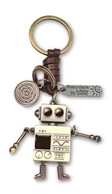 The AuPra Fashion Robot KeyChain Gift is a stylish and practical accessory for holding keys. Made with a polished smooth surface and genuine vintage leather, it is safe to carry around in your pocket and offers everyday comfort. The keychain comes in 180 different styles, making it a perfect gift for any occasion. Each keychain includes a gift bag for an extra surprise. The Fashion Robot design adds a touch of fun and uniqueness. However, some customers have reported durability issues, with the robot head detaching from the body. Overall, it is a cute and attractive keychain option with mixed reviews.