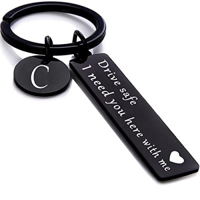 The Chasing DreamsMRL Drive Safe Keychain is a thoughtful and romantic gift for boyfriends, husbands, or dads. Made of high-quality stainless steel, this keychain features the phrase 'Drive safe I need you here with me' along with 26 initials. It is a great gift idea for Valentine's Day, Christmas, birthdays, or anniversaries. The keychain is designed to remind loved ones to stay safe on the road. It comes in a sleek black color and is laser engraved for a clean and polished look. The keychain is durable and long-lasting. Show your loved one how much you care about their safety with this cute and unique keychain.