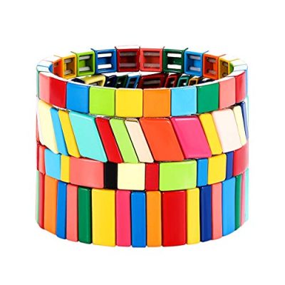 Add a touch of charm and color to your outfit with the XOCARTIGE 4PCS Tile Bracelet for Women. This stylish set of four 'Rainbow Lite' tile bead bracelets features colorful geometric beads coated in enamel, along with gold-tone beads, that can be stacked together or worn separately. The bracelets are made with a stretchable elastic cord for easy wearing. They are perfect for adding a vibrant pop of color to both formal and casual attire. Additionally, these bracelets make a thoughtful gift for your loved ones on various occasions. With XOCARTIGE's excellent after-sale service, you can be confident in your purchase. These bracelets have received positive reviews, with customers praising their quality and versatility.
