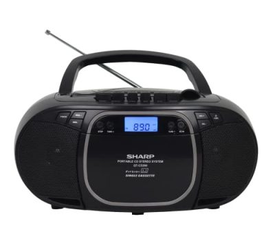 The Sharp QT-CD290(BK) Portable CD MP3 Cassette Boombox is a versatile and compact audio device that combines a top-loading CD player, MP3 playback, cassette player, AM/FM radio tuner, and an auxiliary input. With an attractive speaker grill and a sleek black design, this boombox is perfect for music lovers on the go. It uses 6 UM-2/C sized batteries for portable use and has an output power of 1.2 W x 2 RMS. The dimensions are 9.40Lx4.90Wx8.80H, making it easy to carry and fit in small spaces. Customers have praised its performance, sound quality, and ease of use. Overall, the Sharp QT-CD290(BK) is a reliable and handy portable boombox for all your music needs.