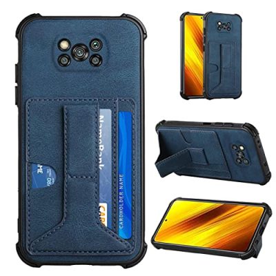 IVY Card Holder Case for Xiaomi Poco X3 / X3 Pro / X3 NFC Wallet Case with Kickstand Function - Blue