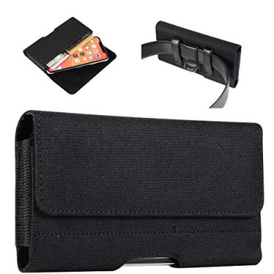 The eMorevalue Rugged Nylon Cellphone Belt Clip Case Holster Pouch Holder offers a secure and convenient way to carry your phone. With its heavy-duty belt clip and two belt loops, you can wear it on your belt in a horizontal position. The case also features two card slots and a key coin holder for storing your essentials. Made of durable nylon canvas material with a soft microfiber lining, it protects your phone against scratches and dust. The strong magnetic snap closure keeps your phone securely in place. It is compatible with various phone models and is perfect for business, travel, outdoor activities, and more. Overall, this belt clip case holster offers durability, convenience, and protection for your phone.
