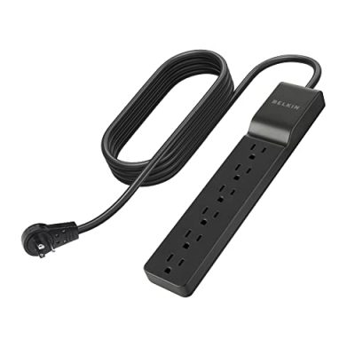 The Belkin 6-Outlet Home and Office Power Strip Surge Protector is an ideal solution for small home appliances, general household electronics, entry-level computers, printers, and ADSL modems. It provides complete protection from power surges, spikes, and AC contamination. With 720 Joules of surge protection, it filters RFI/EMI noise up to 43dB. The slim design helps reduce office clutter, and the 4-foot power cord is long enough to tuck discreetly behind a desk. It comes with a Belkin Lifetime Warranty and a $15,000 Connected Equipment Warranty. The surge protector has received a customer rating of 4.6/5.