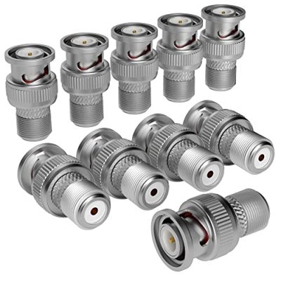Looking to connect devices such as cameras, satellite systems, or TVs? The BNC Male Plug to F Female Jack Adapter Coax Connector is an ideal choice. With a nickel plated body for enhanced corrosion resistance and gold plated contacts, this adapter ensures durability and optimal performance. It is perfect for extending cable runs using a male BNC converter. The silver-colored adapter is available in a pack of 10. Customers have praised its construction and performance, with most stating that it worked as intended. However, a few users reported issues with grounding and durability. With an average customer rating of 4.5 out of 5, this adapter provides good value for the money.