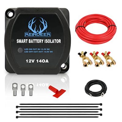 The REINDEER Dual Battery Smart Isolator 12V 140Amp Double Battery Automatic Charger ATV UTV Wiring Kit is a reliable and convenient solution for managing power distribution in your vehicle. Its voltage sensitive chip ensures that your primary battery is always ready to go, and the kit allows your accessories to run from a separate battery when the engine is not running. It is small, suitable for various vehicles, and comes with all the necessary components for easy installation. The lifetime warranty adds value and assurance to the product. Upgrade your vehicle’s power management system with this dual battery isolator kit and enjoy worry-free journeys.