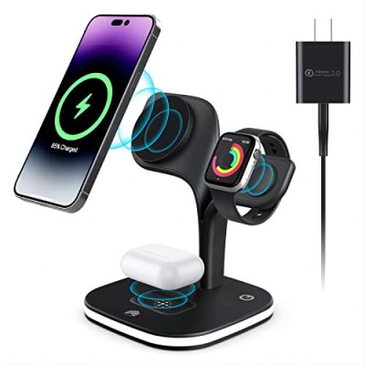 The Greenlemon Mag Safe Charger Station is a 3-in-1 wireless charging station designed for Apple users. It allows you to charge your iPhone, Apple Watch, and AirPods simultaneously. With its powerful magnetic connection and easy alignment, the charger station ensures an uninterrupted charging experience. The station can charge your devices vertically or horizontally, making it convenient for watching movies or video chatting. It also features a night light function with three adjustable brightness levels, perfect for creating a friendly sleeping environment. The charger station is compatible with iPhone 14/13/12 series, iWatch SE/6/5/4/3/2, and AirPods 2/Pro. It comes with built-in safety features to protect your devices from overcharging damage. Overall, the Greenlemon Mag Safe Charger Station offers a simple and efficient way to charge your Apple devices without the hassle of messy cables.