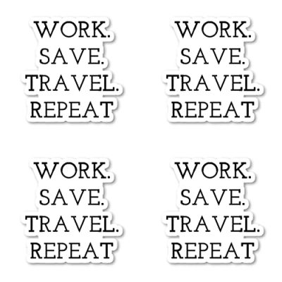 The Work Save Travel Repeat Sticker Travel Wanderlust Stickers are a pack of 4 laptop and phone stickers that showcase your love for travel. These 2.5-inch vinyl decals are super simple to add to any surface, whether it's your laptop, phone, tablet, or more. They are designed in the USA and are waterproof, so you don't have to worry about scratches or getting wet. Peel and stick these stickers as many times as you want without any hassle. Spice up your belongings and show off your wanderlust with these fun and stylish stickers.