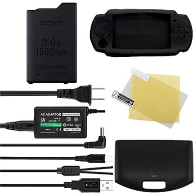 The TFSeven High Capacity Replacement Sony PSP-110 Battery + AC Adapter 5V 2A Wall Travel Power Supply + Back Door Battery Cover is a comprehensive accessories kit bundle designed for Sony PSP 1000 series. The package includes a replacement battery, a wall charger, a clear screen protector, a PSP Data & Power USB cable, and a silicone protective case. The battery has a voltage of 3.6V and a capacity of 1800mAh, providing a long-lasting power source for your PSP. The kit is compatible with various PSP models and comes with a 24-month quality warranty and a 30-day money-back guarantee. Overall, it offers a convenient and cost-effective solution for PSP users.