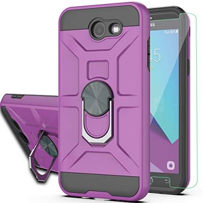 The Galaxy J3 Prime/J3 2017/J3 Eclipse/J3 Emerge/J3 Mission/J3 Luna Pro/Express Prime 2/Amp Prime 2 Case with HD Screen Protector by YmhxcY provides comprehensive protection for your Samsung Galaxy J3. With a 360-degree rotating metal ring, a solid support, and convenient video browsing, this case offers unique patented technology and a durable PC integrated shell. The case also features a PC+TPU two-in-one design, wear-resistant coating, and a comfortable grip. It comes with a free high-quality HD screen protector and is compatible with various Galaxy J3 models. Available in a trendy ZS Purple color, this case offers excellent protection and functionality.