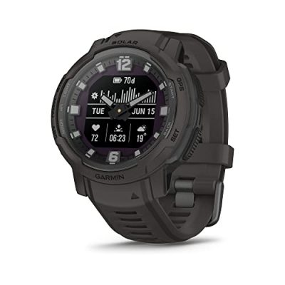 The Garmin Instinct Crossover Solar is a rugged hybrid smartwatch that combines a classic analog experience with smart functionality. It features luminescent analog watch hands in a bold and rugged watch body with a high-resolution digital display. The watch is built to withstand thermal and shock resistance and has a water rating of 10 ATM. It can be paired with compatible Android or Apple smartphones for smart notifications and has Garmin Pay contactless payment solutions. The watch also offers all-day health monitoring features, built-in sports apps, and GPS navigation support. With solar charging capabilities, the watch has incredible battery life, making it perfect for outdoor adventures. Overall, the Garmin Instinct Crossover Solar is a versatile and durable smartwatch.