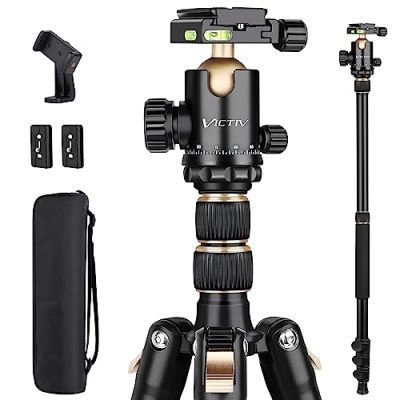 The Victiv 72 inch Camera Tripod with Remote is a great choice for photographers and videographers who want a versatile and lightweight tripod. With its tall height and lightweight design, it is perfect for travel. The durable aluminum alloy construction ensures stability, and the tripod can also be converted into a monopod for added flexibility. The wireless remote and adjustable phone holder make it compatible with various smartphones. The 3-way swivel head allows for smooth panning and tilting, giving users the ability to capture shots at different angles. While it may not be suitable for heavy professional use, the Victiv 72 inch Camera Tripod with Remote is a reliable and affordable option for general-purpose photography.