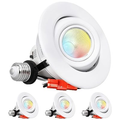 Elevate your home's aesthetics with TORCHSTAR 4 Inch 5CCT LED Gimbal Retrofit Recessed Light Dimmable. This pack of 4 lights allows you to effortlessly switch between 5 color temperatures to set the mood and create your favorite ambiance. With adjustable lighting angle and customizable brightness, you can highlight artwork and provide focused illumination. Designed for easy retrofit or new construction installation, these lights are suitable for most 4-inch cans. The high-quality build ensures long-lasting performance, with a 50,000-hour lifespan and a 3-year warranty. The TORCHSTAR 4 Inch 5CCT LED Gimbal Retrofit Recessed Light Dimmable is the perfect solution to enhance your home's lighting.