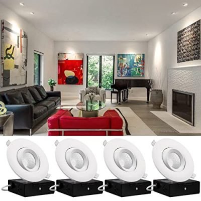 Enhance your lighting with the TORCHSTAR 4 Inch LED Gimbal Recessed Lights. With a rotatable design and anti-glare features, these lights are perfect for any room. The smooth dimming capability and high CRI90+ ensure vivid, natural colors. Installation is a breeze with the included j-box, making it suitable for retrofit, remodel, or new construction projects. The die-casted aluminum shell and independent radiator provide durability and extend the light's service life. ETL and Energy Star certified, this pack of 4 lights comes with a 3-year warranty. Transform your space with the TORCHSTAR 4 Inch LED Gimbal Recessed Lights!