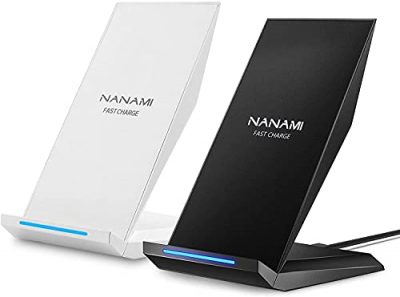The NANAMI Fast Wireless Charger is a Qi certified charging stand compatible with various iPhone and Samsung Galaxy models. It comes in a pack of two, making it convenient for multiple devices or different locations. The ergonomic stand design allows for vertical or horizontal charging while still being able to use your phone. With two wireless charging modes, it supports fast charging and has safety features in place to protect the battery. The charger also has an intelligent LED indicator and comes with a one-year warranty. It is compatible with most phone cases and offers efficient and reliable wireless charging for your mobile devices.