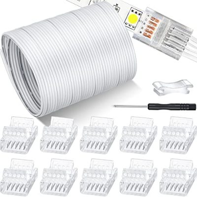 The Flutesan 32.8ft RGB Extension Cable Wire Cord and LED Light Strip Connectors set provides a complete solution for connecting your light strips. It includes a 10m/32.81ft extension cable, 10 transparent 5 pin LED connectors, and a screwdriver for easy installation. The connectors are compatible with a wide range of LED light strips and wires, and offer stable and flexible connections without the need for stripping insulation or soldering. Made of high-quality materials, the connectors and extension cable are durable and safe to use. With easy operation, you can quickly connect your light strips and enjoy enhanced brightness for your space.