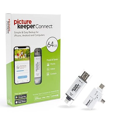 The Picture Keeper Connect Photo & Video USB Flash Drive is a portable and easy-to-use solution for storing and backing up your photos, videos, and contacts. It comes with lightning and USB connectors, as well as a Type C micro USB adapter for Android and Mac. With a user-friendly app, you can easily set up the USB drive on iPhone, Android, Macs, and PCs. It supports backup and restore functions, making it simple to transfer data from your old device to a new one. This 64GB flash drive provides extra storage space and is compatible with various devices and operating systems.