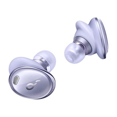 The Soundcore Anker Liberty 3 Pro Noise Cancelling Bluetooth Earbuds Headphones in Dusk Purple are highly recommended by 23 GRAMMY Winning Producers. With a wide soundstage and detailed sound quality, these earbuds deliver high and low frequency sounds without interference. The personalized noise cancelling feature creates a tailored profile for optimized noise reduction. The Fusion Comfort Fit ensures all-day comfort, and the 7 sizes of liquid silicone ear tips and flexible ear wings provide a secure and comfortable fit. Connect to the Soundcore app to update the earbuds' firmware. The earbuds come in a stylish Dusk Purple color and have dimensions of 5.94Lx1.85Wx5.94H. The customer rating for this product is 4.3/5.