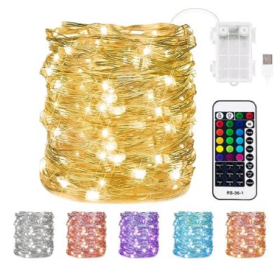 Enhance the ambiance of any space with these Led Fairy Lights. With 120 LEDs, 16 vibrant colors, and a remote control, you can easily create the perfect lighting for any occasion. The battery-operated design allows for easy placement and the waterproof construction makes them great for both indoor and outdoor use. Whether you're decorating for a party, holiday, or simply want to add a cozy touch to your bedroom, these fairy lights are a versatile and stylish choice. Plus, the easy-to-shape copper wire ensures that they can be wrapped and twisted into any desired shape. Bring a touch of magic to your space with these battery operated fairy lights.