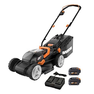 The Worx WG779 40V Power Share 4.0Ah 14" Cordless Lawn Mower is a versatile and convenient tool for maintaining your lawn. With 6 height adjustments, you can easily set the desired height for your lawn. The IntelliCut feature provides torque on demand for tougher conditions. It is compatible with all Worx 20v and 40v tools, outdoor power, and lifestyle products. This 2-in-1 mower allows you to mulch or bag your grass clippings. The on-board battery charge indicator and full-bag indicator help you keep track of the battery life and the capacity of the collection bag. The mower runs on two batteries at a time, and the dual-port charger allows for faster charging. It comes with a 40V mower, two 20V 4.0Ah batteries, a 2A dual-charger, a .85 bushel collection bag, and a mulch plug. The Worx WG779 40V Power Share 4.0Ah 14" Cordless Lawn Mower is perfect for small lawns and offers convenient features for efficient and easy lawn maintenance.