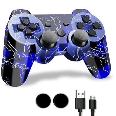 The CFORWARD Wireless Controller is a game controller that is compatible with Play3 controller. It features wireless Bluetooth connectivity and comes with a charger cable and thumb grips. The controller has a blue color. Customers have given it a rating of 4.4/5. Some reviewers have mentioned that the battery life is not as long as advertised, but overall, it is still considered a great product. The CFORWARD Wireless Controller resembles the original dualshock controller and feels comfortable in the hands. However, there have been reports of issues with the right joystick jamming slightly and the R2 button not staying held. On the positive side, the controller is responsive with minimal delay and easy to set up. It is also praised for its design and grip. The CFORWARD Wireless Controller is primarily intended for use with a PS3 and requires a wired connection for compatibility with a PC.