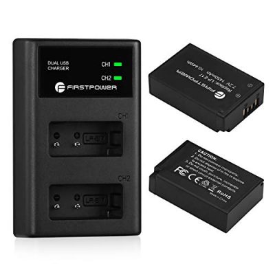 The FirstPower 2-Pack LP-E17 Battery and Dual USB Charger is a powerful and convenient accessory for Canon EOS digital SLR cameras. With a capacity of 1450mAh and a voltage of 7.4V, these lithium-ion batteries provide an upgraded backup that double the camera runtime, allowing you to capture more wonderful moments. The set is fully compatible with Canon EOS RP, Rebel T6i, T7i, T8i, T6s, SL2, SL3, M3, M5, M6, 200D, 77D, 750D, 760D, 800D, and 8000D digital SLR cameras. The smart LED dual charger features an intuitive LED indicator that shows the charging status of each battery. It can charge two batteries simultaneously, saving you charging time. The package includes 2 replacement batteries, a dual battery charger, a micro USB cable, and a cleaning cloth.