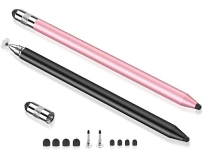 The MEKO(TM) [2 in 1 Precision Series] Disc Stylus/Styli is a versatile and high-quality stylus pen bundle that is perfect for taking notes, drawing, and everyday use. It features a clear disc tip for precise marking and a durable fiber tip for tapping, coloring, and scrolling. Made from stainless steel and aluminum, it provides a real pen feeling and is compatible with all touch screen devices. The bundle includes 2 stylus pens and comes with 4 replacement disc tips and 2 replacement fiber tips. The MEKO(TM) Disc Stylus is not a fine point stylus but works just as effectively. With a customer rating of 4.5/5, this stylus bundle offers precision and sensitivity for all your touch screen needs.