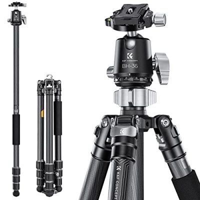 The K&F Concept 64 inch/163cm Carbon Fiber Camera Tripod is a lightweight and portable travel tripod that offers high quality and versatile functionality. With a carbon fiber construction, this tripod is both lightweight and strong, making it perfect for outdoor use. It features a 360-degree metal ball head for easy camera angle adjustment and precision shots. The tripod is compatible with most cameras, DSLR cameras, projectors, and telescopes. Its 4-section leg can be easily adjusted for height, and it can be folded to a compact size for easy storage and transportation. While it may not be as steady as some higher-end tripods, it offers great value for its price.