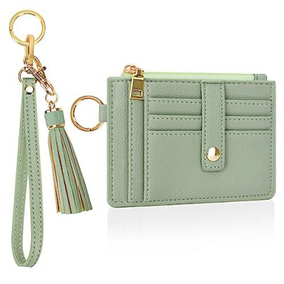 The CHIWUTECH Wristlet Keychain Wallet is a versatile and stylish accessory for women. Made of high quality pu leather and RFID wear-resisting fabric, this slim wallet offers both fashion and functionality. Its design includes multiple card slots, a large ID window, a main compartment with zipper, and a detachable wristlet with keyring. The wallet also features a fashionable leather tassel and comes in various styles and colors, making it a great gift option. With its durable construction and convenient design, it can be worn on your hand or attached to your bag, providing hands-free convenience. Overall, this keychain wallet offers a compact and organized solution for carrying your essentials.