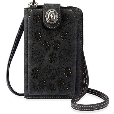 The Montana West Crossbody Cell Phone Purse combines Western-style elements with practical functionality. Made from superior quality vegan leather, this small purse is soft, durable, and lightweight. The purse features unique studs and embossment or embroidery design, making it stand out in the market. With multiple pockets and card slots, including a dedicated phone pocket, it offers ample storage for essentials like IDs, credit cards, and lipstick. The adjustable and detachable strap allows for easy customization. Measuring 7.5"(H) x 5.5"(L) x 0.8"(W), it can fit most smartphones below 7.5", such as iPhone 14 Pro Max and Samsung Note 20 Ultra. The Montana West Crossbody Cell Phone Purse is a fashionable and functional accessory for events, shopping, and traveling.