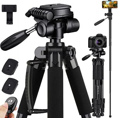 The KINGJUE 60” Camera Phone Tripod Stand is a reliable and affordable option for photographers and videographers. Its 3-way pan head, universal compatibility, and lightweight design make it a versatile tool for capturing stunning photos and videos. While it may lack instructions for the remote and feel slightly flimsy at full extension, these minor drawbacks are outweighed by its overall performance and value for money. Whether you’re a beginner or a professional, this tripod provides the stability and functionality you need to elevate your photography game. With its compact size and included carry bag, it’s also convenient to take on the go. Capture your moments with ease and precision using the KINGJUE 60” Camera Phone Tripod Stand.