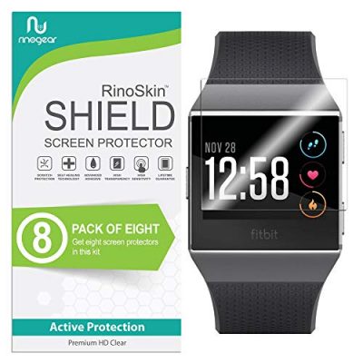 The RinoGear Fitbit Ionic Screen Protector is a must-have accessory for protecting your device's screen. Made with a unique flexible film material, it provides crystal clear clarity and a glass-like surface while preserving touchscreen functionality. Designed to be compatible with most Fitbit Ionic cases, this screen protector offers full coverage and is easy to install with its wet application process. Each pack includes 8 screen protectors and a lifetime replacement film voucher. Customers have praised its protective properties and ease of installation, although some have mentioned that it may not sit perfectly without extra assistance. Overall, the RinoGear Fitbit Ionic Screen Protector is an affordable and reliable option for keeping your device's screen safe.