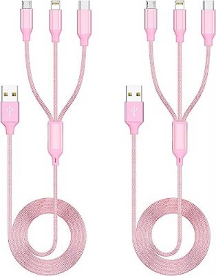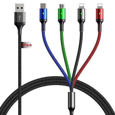 The Multi Charger Cable is a versatile and convenient charging solution for all your mobile devices. With its 4 in 1 design, it supports Dual iP, Micro USB, and Type C connectors, making it compatible with most cell phones on the market. The cable is equipped with a special indicator light, making it ideal for night-time charging. Its 6ft length and lightweight design make it easy to carry and perfect for use in the car, office, home, or while traveling. The durable fishing net and nylon braided cord, along with the aluminum alloy casing, ensure its longevity. It can charge multiple devices simultaneously, but requires a 5V/3.0A power source. Compatible with various Phone, Samsung Galaxy, Huawei, LG, Sony, HTC, and more devices. Get 2Pack 6ft/180cm multi charger cables with indicator light design. Score: 8.2/10.