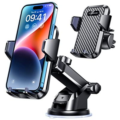 The andobil Car Phone Holder Mount [2023 Upgraded] Smartphone Air Vent Holder is a top-of-the-market car phone holder that offers unparalleled stability and reliability. With a clamping force 20 times stronger than other holders, this military-grade super stable holder ensures your phone stays in place even on the bumpiest roads. The upgraded design features aviation material and a metal vent clip for added durability, making it suitable for use in extreme driving conditions. The one-handed operation allows for easy mounting and removal of your phone, while the highly flexible ball-joint offers infinite viewing angles. The adjustable foot design and universal compatibility make this holder compatible with all smartphones, including big phones and those with thick cases. With a 24-month warranty and quick response customer service, andobil provides worry-free vouchsafing. Overall, this car phone holder is convenient, secure, and versatile.