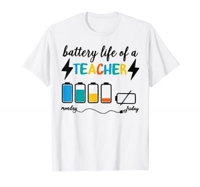 The Battery Life of a Teacher Funny School Classroom T-Shirt is a fun and lighthearted gift for teachers. It captures the challenges and dedication that teachers face every day. However, some customers have mentioned that the shirt’s quality is not the best. Overall, if you’re looking for a unique gift for a teacher, this t-shirt is worth considering.