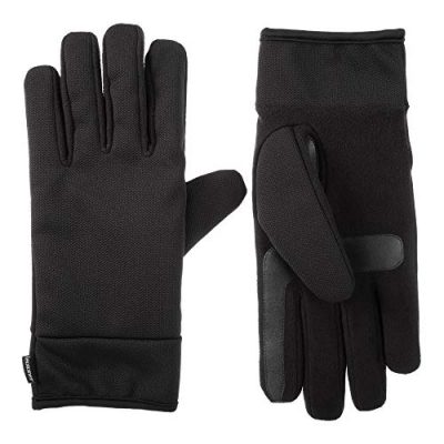 Stay warm, active, connected, and dry with the Isotoner Mens Touchscreen Water Repellent Cold Weather Gloves. These gloves are designed for maximum flexibility and movement, featuring a contoured spandex stretch design. The dual lining provides targeted insulation and flexibility in key areas, while the smartdri technology repels water to keep your hands dry. Equipped with smarTouch touchscreen technology, these gloves allow you to use your smartphone and tablet with ease. Available in a sleek black color, these gloves are perfect for outdoor activities and on-the-go lifestyles.