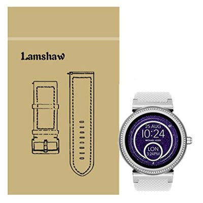 The Lamshaw for Michael Kors Access Sofie Band is a high-quality silicone replacement band designed for the MK Access Sofie Smartwatch. The band features a quick release mechanism for easy removal and replacement. It comes in a sleek white color that adds a sporty touch to your smartwatch. With its durable and comfortable design, this band is perfect for everyday wear and active lifestyles. The band does not come with different buckle options, which may be a downside for some users. Overall, it is a great accessory for MK Access Sofie Smartwatch owners looking to switch up their style.