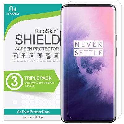 The RinoGear (3-Pack) Screen Protector provides excellent protection for your OnePlus 7 Pro’s screen. It is made from a unique flexible material that covers the curves and offers full coverage. The crystal clear clarity and touchscreen functionality make it a great choice for any OnePlus 7 Pro user. While it may not be a tempered glass screen protector, the ‘wet install’ film allows for flexibility and easy installation. Plus, the inclusion of a lifetime replacement film voucher ensures long-term use for your device. The only downside is the screen protector being slightly smaller than the full front screen, but overall, it offers great value for money.
