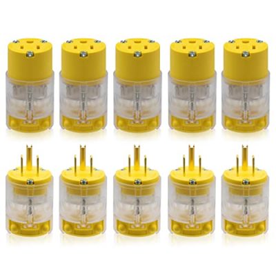 The ELEGRP Lighted Straight Blade Electrical Plug and Connector Set is a reliable and versatile option for various electrical applications. It features a unique dimpled body for easy gripping and installation, with alignment features to ensure proper assembly. The set includes an adjustable rear cord clamp that accommodates different wire sizes, making it ideal for making new power cables or repairing extension cords. With its green neon light, you can easily determine if power is flowing. The toughened construction and copper brass contacts provide excellent conductivity and durability. This set is perfect for use with generator transfer switches, power inlet plugs, and a wide range of equipment in commercial, residential, and marine settings. Please note that this product is not waterproof and should be used indoors. Overall, it offers reliable performance and great value for the price.