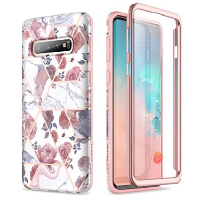 The SURITCH Case for Galaxy S10 offers stylish protection with its Rose Gold Marble design. The built-in screen protector prevents display damage while maintaining touch sensitivity. The dual-layer construction provides 360-degree full-body rugged protection, safeguarding your phone from accidental drops and impacts. This case supports wireless charging and features precise cutouts for easy access to all phone features. Compatible only with the Galaxy S10 6.1 Inch, this case comes with a one-year limited warranty. However, some users have reported issues with the fingerprint scanner and operation of the touch screen with the screen protector. Overall, the SURITCH Case for Galaxy S10 offers reliable protection with a touch of style.