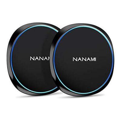 The NANAMI Fast Wireless Charger [2 Pack] is a Qi certified wireless charging pad that offers convenient and efficient charging for a wide range of devices. With its two-pack design, you can have one charger at home and one at the office, or use one as a backup. The charger is compatible with various devices including iPhone, Samsung Galaxy, New Airpods, and more. It features intelligent protection technology to ensure the safety of your devices during the charging process. The smart indicator design allows for a sleep-friendly experience by turning off the LED light after 10 seconds. The package includes two wireless charger pads, two charging cables, and comes with a 30-day money back guarantee and 12-month replacement guarantee.
