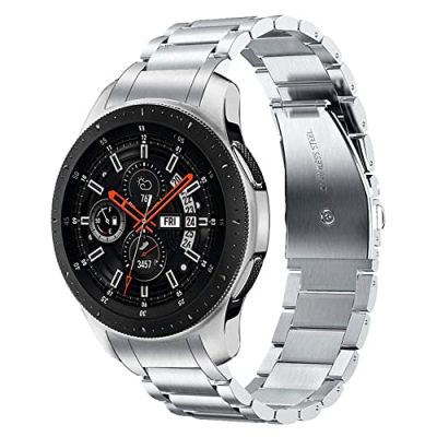 The Compatible with Galaxy Watch 3 45mm/Samsung Galaxy Watch 46mm/Gear S3 Frontier/Classic Band is a stylish and affordable option for upgrading your smartwatch. Made from top stainless steel mesh, it offers durability and elegance. The adjustable free size ensures a comfortable fit for different wrist sizes, and the quick release pins make installation a breeze. While the band may have some drawbacks like a potentially loose magnet clasp during high-impact activities and a tendency to snag on delicate clothes, it still provides good value for the price. Overall, if you’re looking for a budget-friendly replacement band that adds a touch of sophistication to your smartwatch, this band is worth considering.