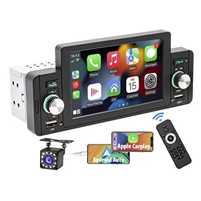 The 5 Inch Single Din Car Stereo is a feature-packed upgrade for your car’s audio and connectivity. With built-in Apple CarPlay, Android Auto, and Mirror-Link compatibility, it offers seamless smartphone integration and hands-free functionality. The 12 LED HD backup camera enhances rear view visibility, while the 5-inch full touch screen provides a user-friendly interface. The Bluetooth 5.1 technology ensures stable wireless audio streaming for an immersive music listening experience. However, the unit may run hot and have durability issues. Additionally, it may not fit all car dashboards and the Android Auto performance is subpar. Overall, it’s a good budget-friendly option for upgrading your car stereo system.