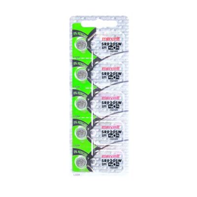 The Maxell SR920SW Watch Battery Button Cell 371 is a pack of 5 batteries that provide a new life for your watch. The batteries have a 1.55 Volt nominal voltage and are designed to be lightweight and have stable discharge. They also feature leakage resistance, ensuring long-lasting performance. The batteries come in a blister package with original hologram packaging. With positive customer ratings and reviews, these Maxell batteries are a reliable choice for your watch.