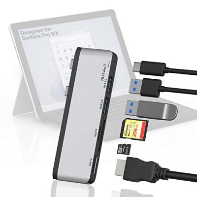 The Surface Pro 9 Docking Station is a versatile hub designed specifically for the Surface Pro 9 and Pro X. It turns the 2 USB-C connections into 6 ports, including HDMI 4K, USB C, USB-A 3.0, and SD/TF card readers. With support for dual monitors and up to 4K resolution, it provides a superior viewing experience. The docking station also allows for fast data transfer with Thunderbolt 4 and USB 3.0 ports. It supports audio and mic input, making it convenient for audio calls. The compact and lightweight design makes it ideal for travel. Overall, the Surface Pro 9 Docking Station is a great accessory that enhances the functionality of your Surface Pro 9 or Pro X.