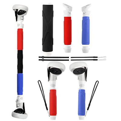 Enhance your virtual reality gaming experience with the VR Beat Saber Handles Extension Grips for Oculus/Meta Quest 2. These grips are designed specifically for Beat Saber games, offering a more realistic and immersive feel while playing. The high-quality plastic and silicone construction ensures stability, comfort, and durability, with anti-sweat and non-slip properties. The 2-in-1 upgraded version allows for easy installation and is suitable for various VR games. The grips are compatible with Beat Saber, Fruit Ninja, Golf+, Baseball, Tennis, and more. The double handle design and wider Velcro holes provide a secure and unbreakable connection to your VR controller. With included extras and 18 months of product warranty, these grips are a must-have accessory for any Oculus/Meta Quest 2 owner.