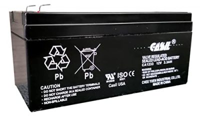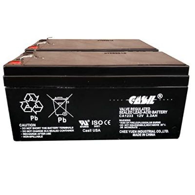 The Casil 12V 3.3Ah Replacement Battery is a rechargeable sealed lead-acid battery that offers long-lasting high performance in high and low temperatures. With a dimension of 5.28Lx2.64Wx2.36H, it can be mounted in any position and resists shocks and vibrations. The battery has a high discharge rate, wide operating temperatures, long service life, and deep discharge recovery. It comes in a pack of 2 and is backed by a 1-year warranty.