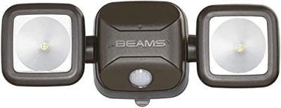 The Beams MB3000 High Performance 500 Lumen Wireless Battery Powered Motion Sensing LED Dual Head Security Spotlight is a versatile and reliable outdoor lighting solution. With its dual adjustable heads and 500 lumens of bright light, it is perfect for illuminating large, dark areas. The LED security light is motion-activated, detecting movement from up to 30 feet away, and automatically shuts off after 20 seconds to save battery life. It is easy to install with the included screws and is designed to withstand various weather conditions. The brown color blends well with any outdoor setting. The Beams MB3000 is highly rated by customers, with a score of 4.5/5.