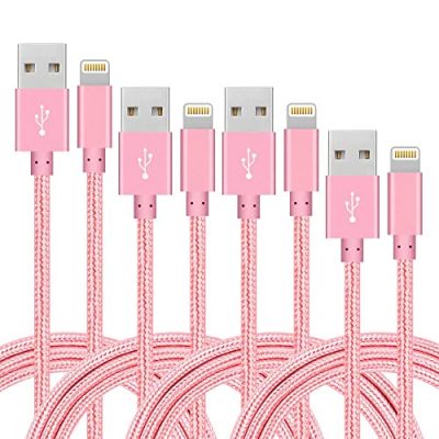 The iPhone Charger 4Pack is a set of USB to lightning cables that are perfect for charging your Apple devices. The pack includes four cables with different lengths, allowing you to have one in different rooms of the house or even in your car. These cables are built to be durable, with nylon braided material and a tinned copper core that increases flexibility and durability by 200%. They have a lifespan of up to 10-15 years, making them more durable than standard iPhone charger cords. The cables also feature fast charging capabilities, with a 2.4A output that is twice as fast as normal charger cords. They are compatible with a wide range of Apple devices and come with a 6-month warranty. Overall, the iPhone Charger 4Pack is a convenient and reliable option for charging your Apple devices.