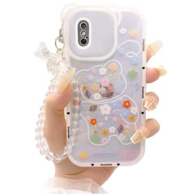 The Kawaii Phone Case is a cute and stylish accessory designed specifically for iPhone XS Max. It features a unique candy bear design with a floral pattern and an anime teddy bear camera lens. The case comes with a flower bracelet wrist strap chain, adding to its elegance and charm. The clear case provides maximum protection while allowing the glitters to stay bling without fading or flaking off. It is made of durable TPU material, ensuring excellent drop protection and shock resistance. The case also has a raised edge to protect the screen and camera lens from scratches and impacts. It is a perfect gift option for girls and women on special occasions.